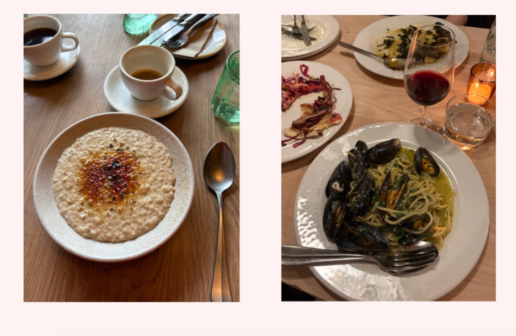 A trip to Glasgow - Popped over with some friends for pretty much the sole purpose of eating and had a lovely time revisiting my consistent favorites. Pictured below is some delicious quince porridge from Outlier and some life-changing white wine and mussel pasta from Gloriosa.
