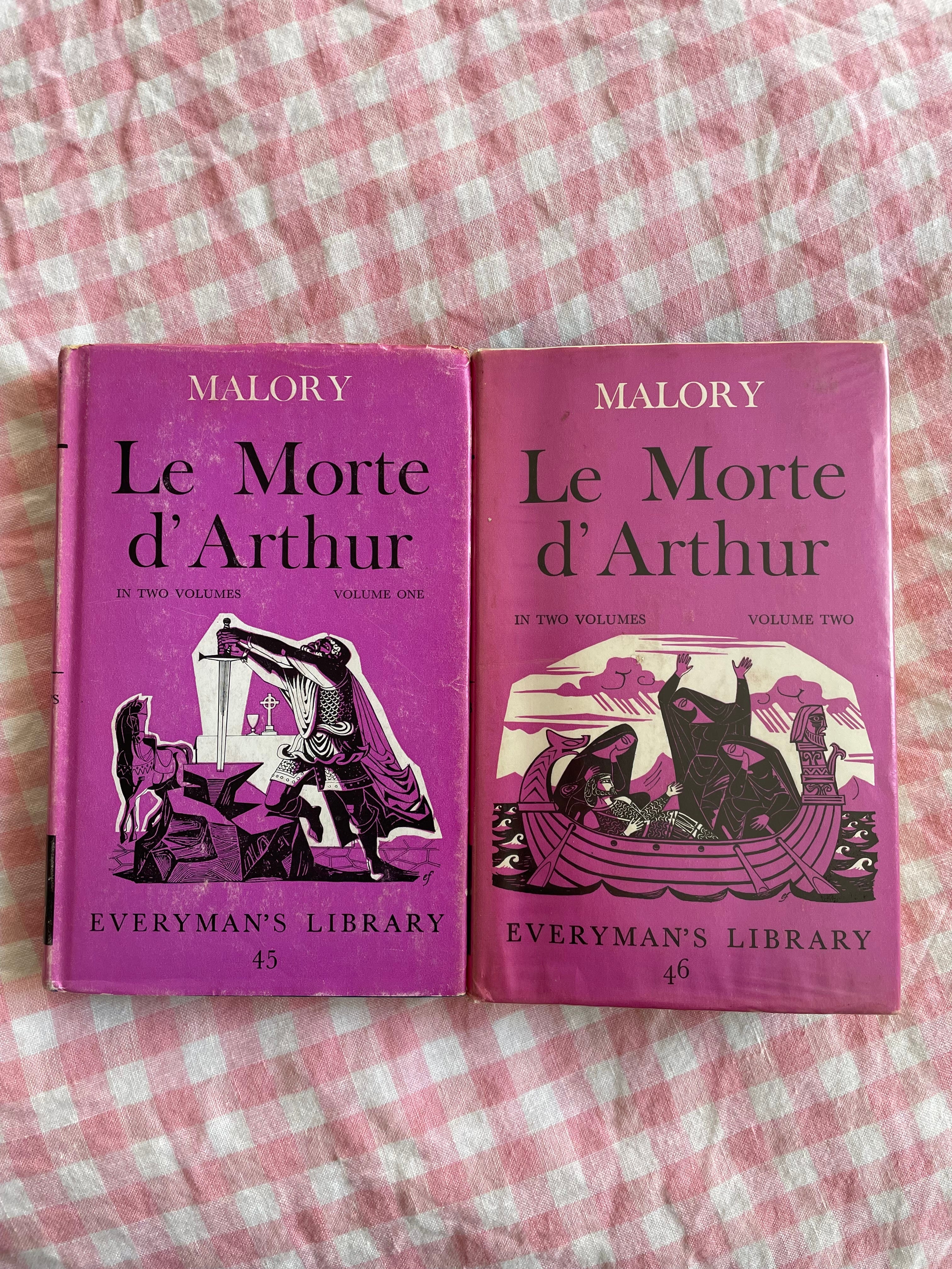 This pink two-volume set of Le Morte d’Arthur - Everything about this design makes me so happy.